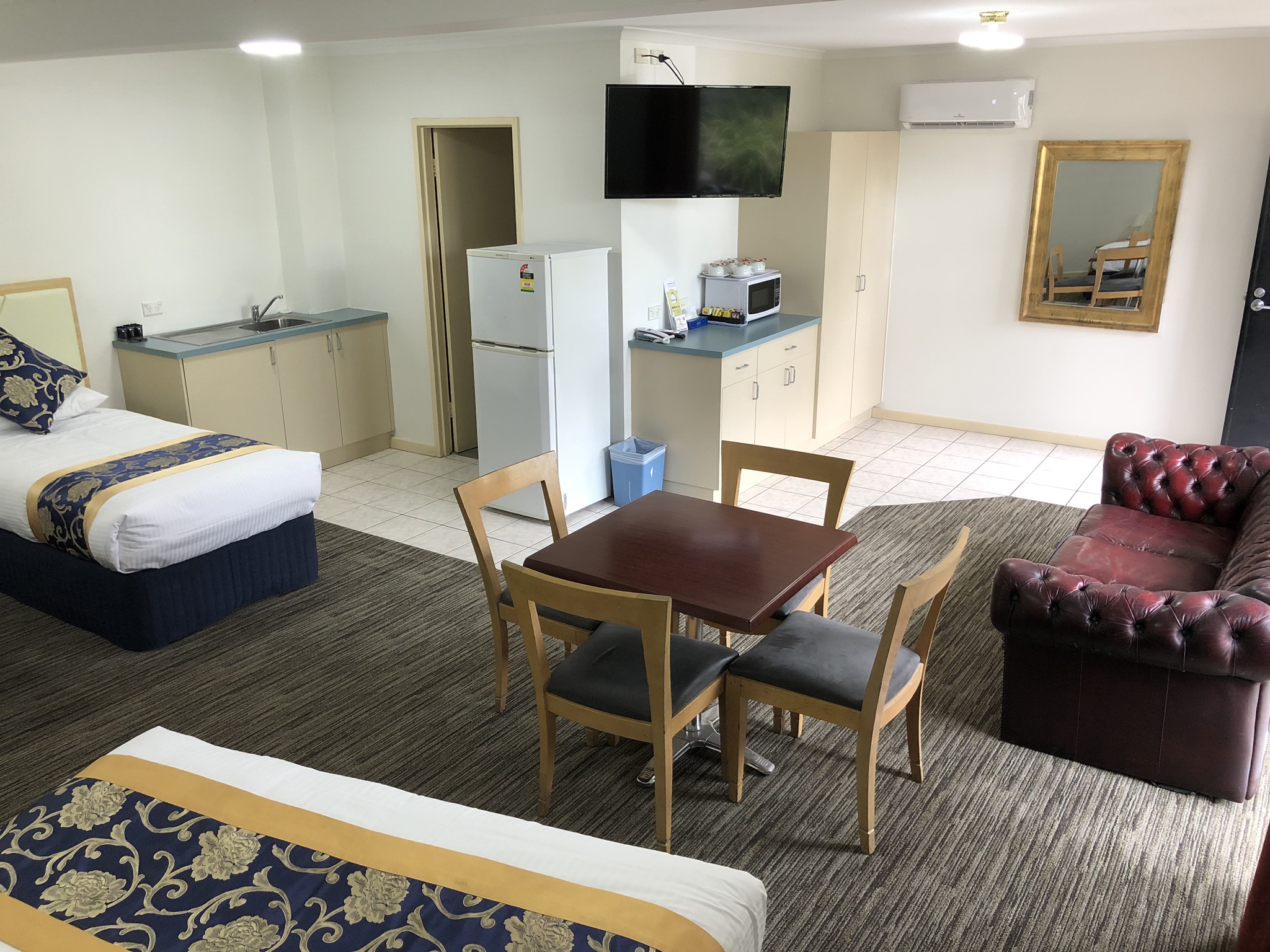 The Deluxe Spa Family Room located downstairs in our updated block is a great place to unwind and let the jets take away your families worries!! It consists of 1 x Queen Bed and 3 x Singles and an updated bathroom with walk in shower, two person Spa, tea and coffee making facilities, toaster, microwave, split system air-conditioning, flat screen TV, FREE WiFi and bar fridge.