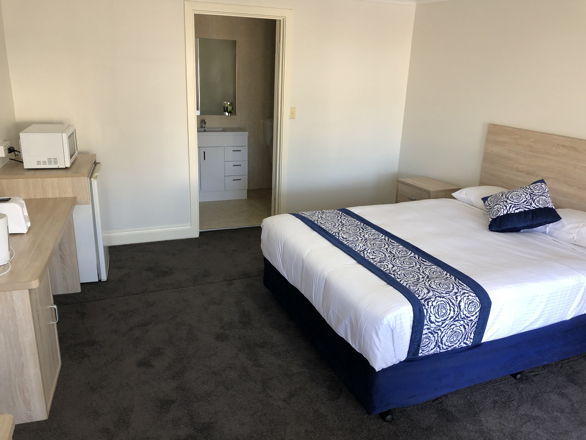 The Deluxe Queen Room located throughout the property! It consists of 1 x Queen Bed and an updated bathroom with walk in shower, tea and coffee making facilities, toaster, microwave, split system air-conditioning, flat screen TV, FREE WiFi and bar fridge.
